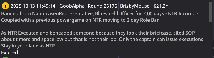 Ban reason: "NTR Incomp" - I am not writing out the entire fucking message - see discord image link