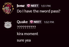 Myself, HoS and a borg are in the command room of evac, the borg says something about “Black Lizard” and points at HoS, who is a black lizard. I say to the borg “you can just say lizard”, then I inspect HoS and realize their name literally has “Black Lizard” in it, so I said “That’s my ligga right there”